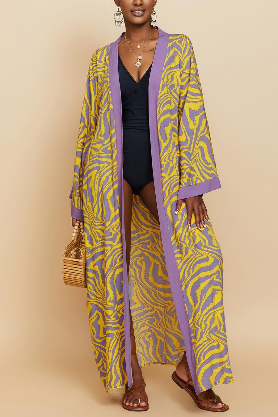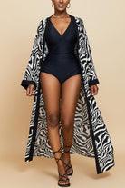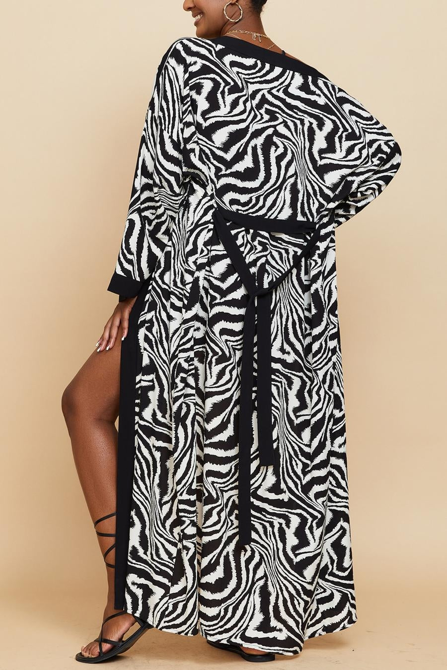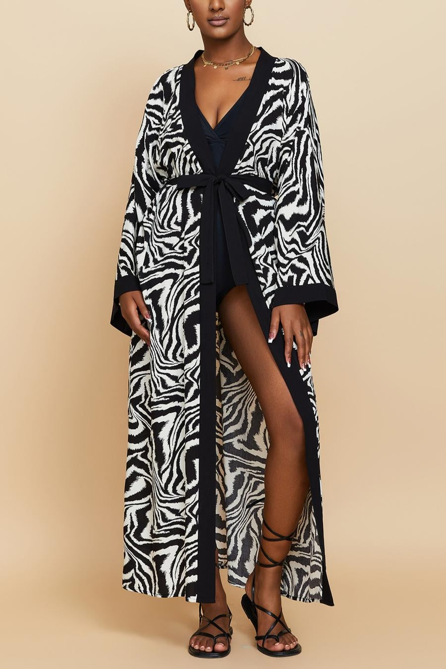 This stylish kimono features a bold zebra-patterned design, adding an eye-catching flair to any look. Incredibly soft and subtly stretchy, the fabric creates a flattering fit that flatters any figure..