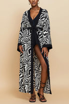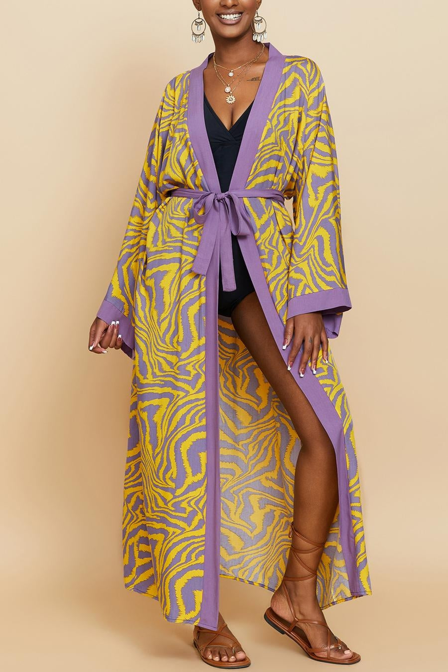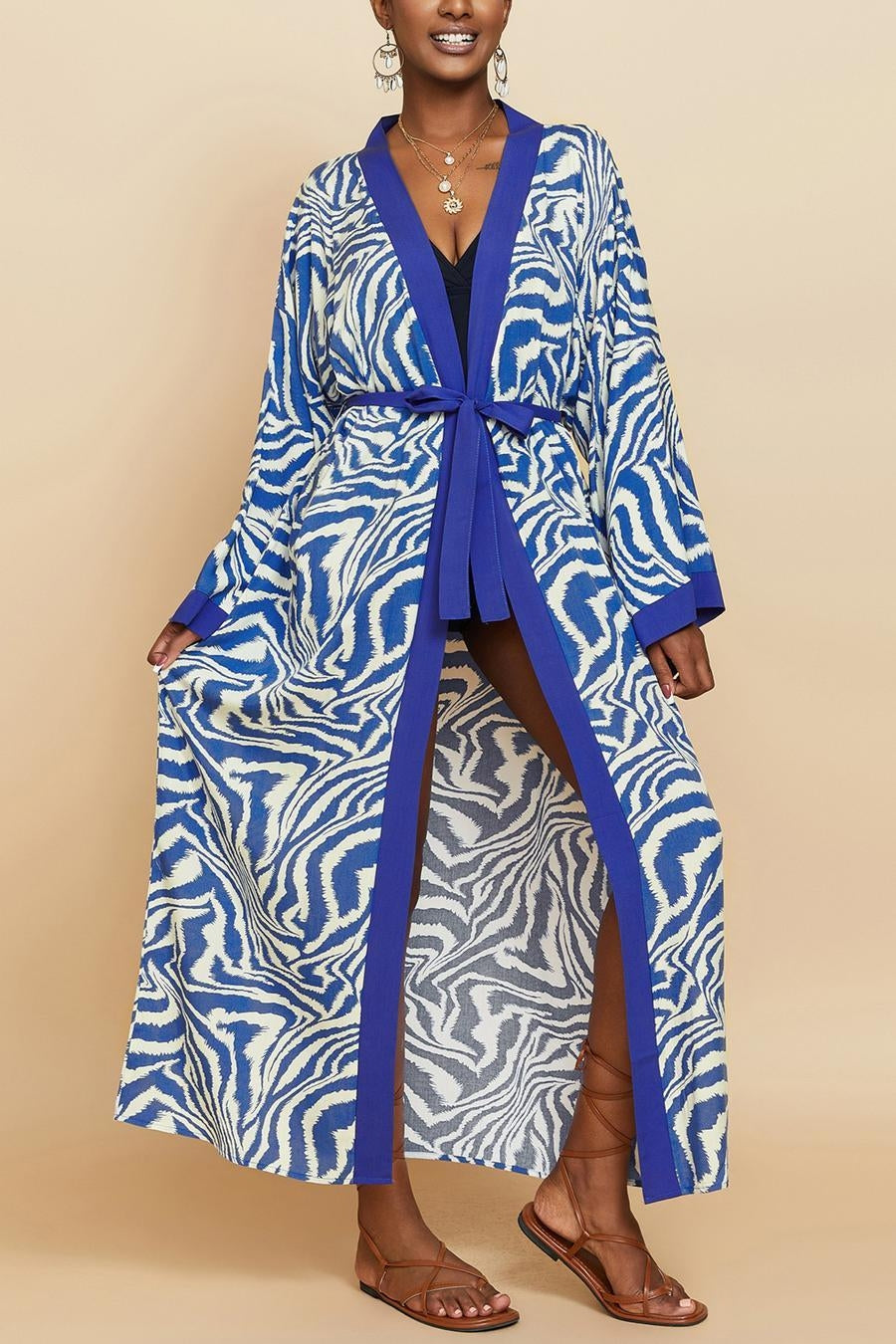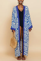 Zebra Print Kimono With Belt -Sold in Black, Blue And Yellow (One Size)