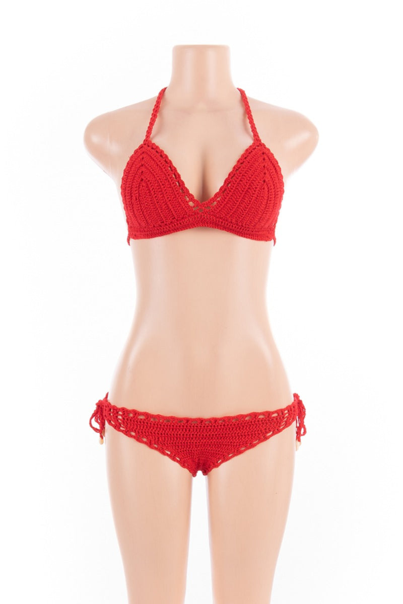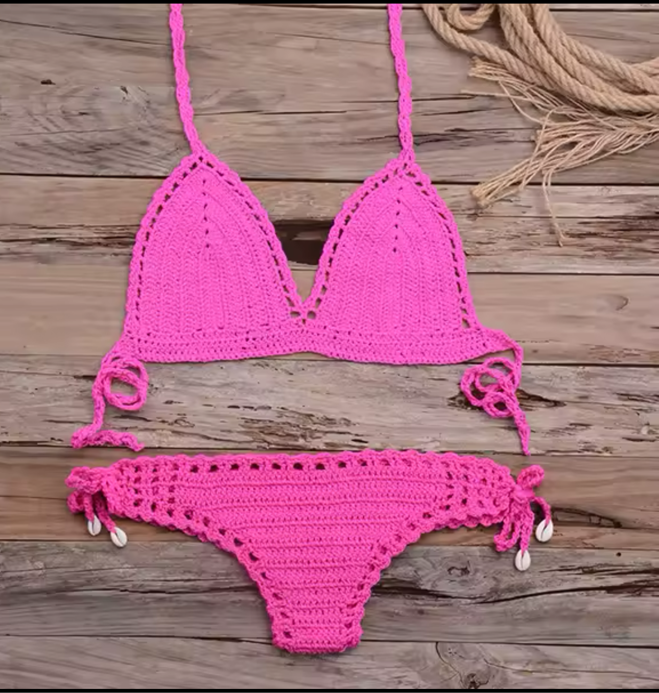 Our Crochet String-Tied Halter Bikini, sold in multiple colors, will instantly upgrade your beachwear with its gorgeous sea shell detailing and boho-chic vibes. Its stunning design is sure to turn heads while still keeping you comfortable.