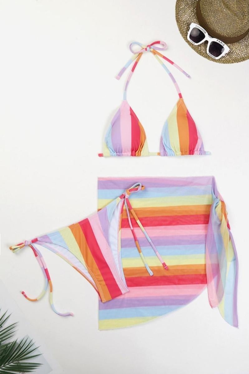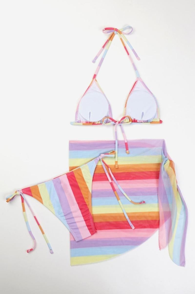 Discover the vibrant style and comfort of our Colorful Striped Bikini with Matching Cover-up. With its eye-catching design and matching cover-up, this bikini set is perfect for a day at the beach or lounging by the pool. The colorful stripes add a fun and playful touch to your swimwear collection. Made from high-quality materials, this bikini set will provide a comfortable and confident fit all day long.