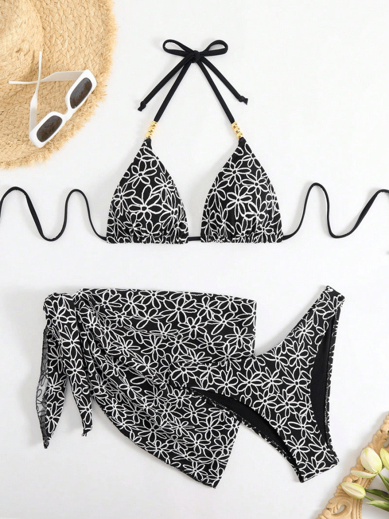Jacquard Print Three Piece Bikini