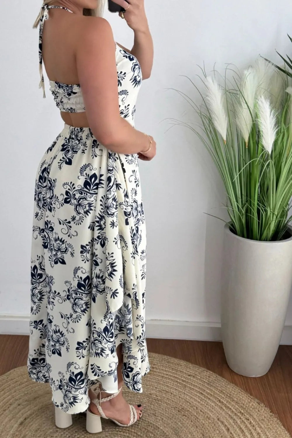 This Smocked Printed Halter Neck Dress features a comfortable smocked bodice that ensures a flattering fit and flexible movement. The open-back design adds a touch of elegance and breathability, making it perfect for warm weather and casual outings. Its vibrant print enhances style, while the halter neck provides support and a chic silhouette. Ideal for those seeking a dress that blends comfort with sophisticated summer fashion.