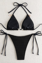 Textured Shell Decor Padded Halter-Neck Triangle Lace-up Bikini Set