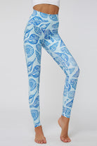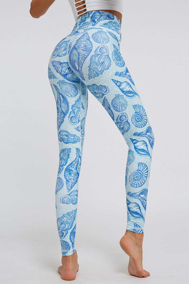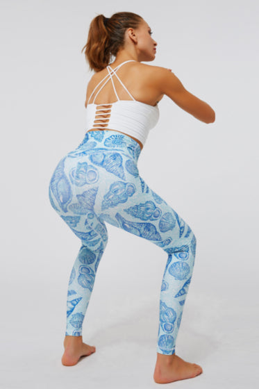 These Blue Sea Shell Print High Waist Yoga Pants combine style and functionality with their flattering high-rise design and vibrant sea shell pattern. Crafted for comfort and flexibility, they provide excellent support during intense yoga sessions or everyday wear. The high waist enhances core stability, while the printed fabric adds a unique coastal-inspired touch to your activewear collection. Ideal for those seeking performance and distinctive design in one.