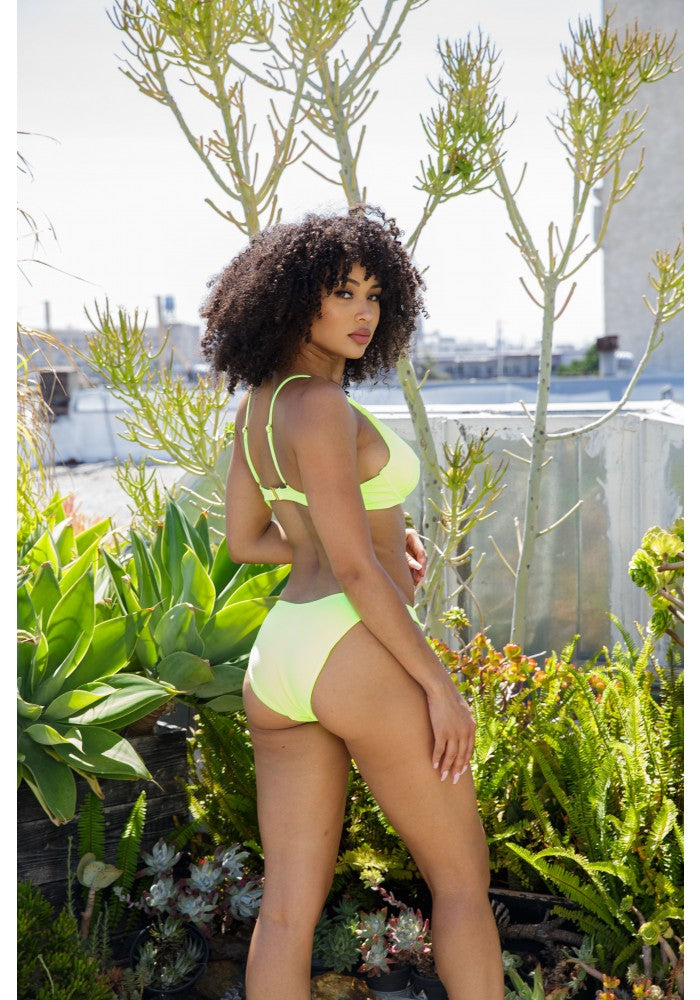 The Yellow/Lime 2-Piece Bikini combines a smocked texture with a lightweight blend of 82% nylon and 18% spandex, delivering both stretch and comfort. Its breathable fabric enhances wearability in warm conditions, while the vibrant color highlights a sun-kissed complexion, making it an ideal choice for stylish beach days.