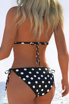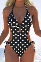 Retro Polka Dot Print Halter-Neck Lace-Up One-Piece Swimsuit