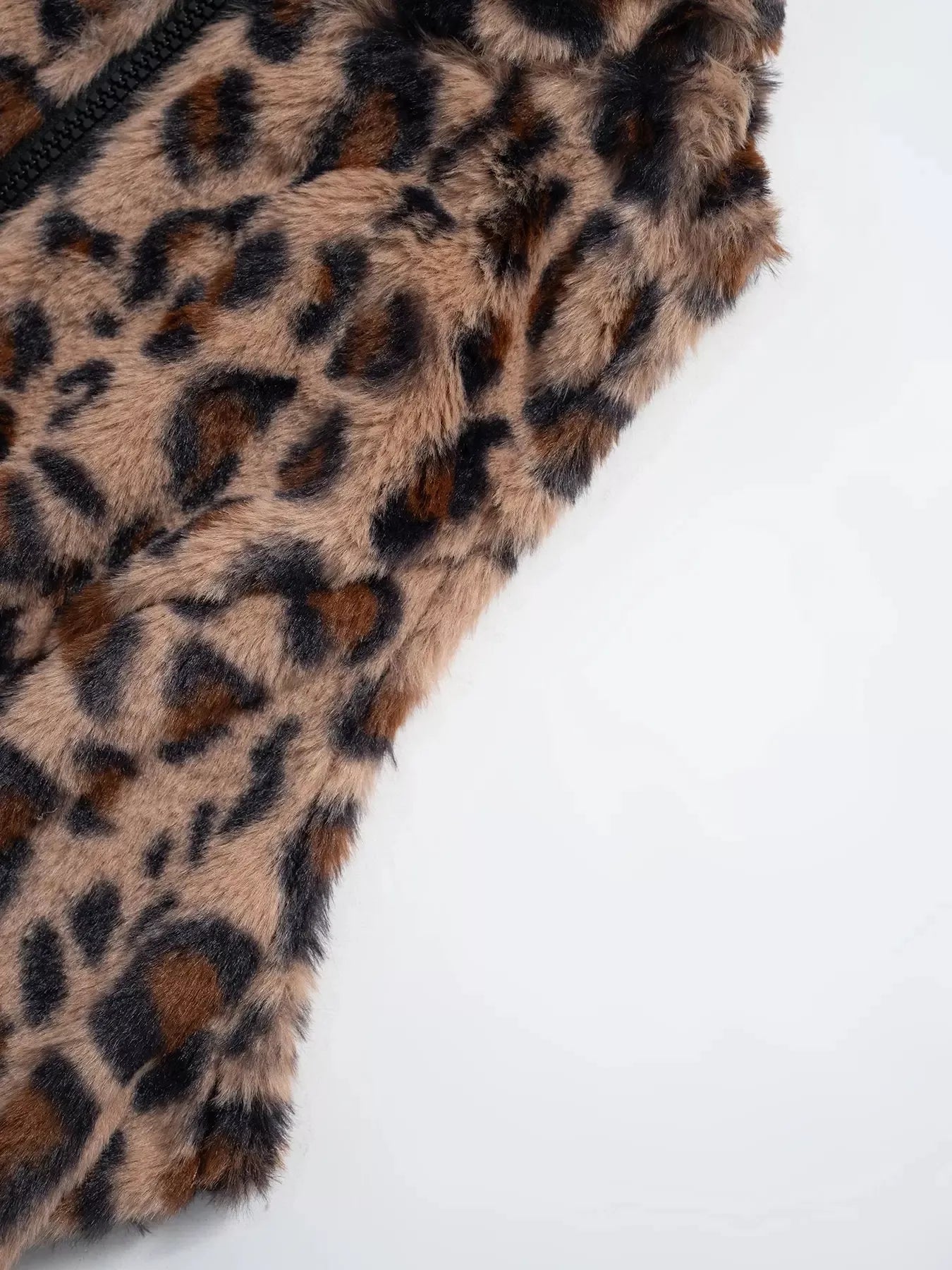 Leopard Zip Up Faux Fur Cropped Vest Coat