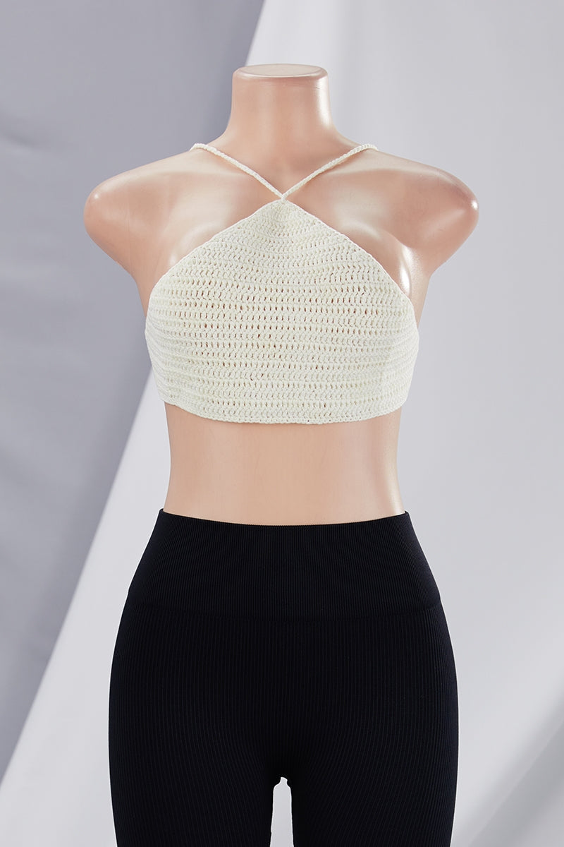 This knitted, unpadded bikini top provides versatility with its self-tie design. Enjoy a summery look by pairing this top with bikini bottoms or shorts in one of the available colors - white, beige, or black.