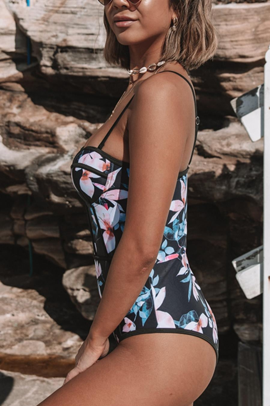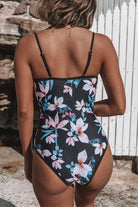 Black and Floral Underwire with Padding One Piece Swimsuit