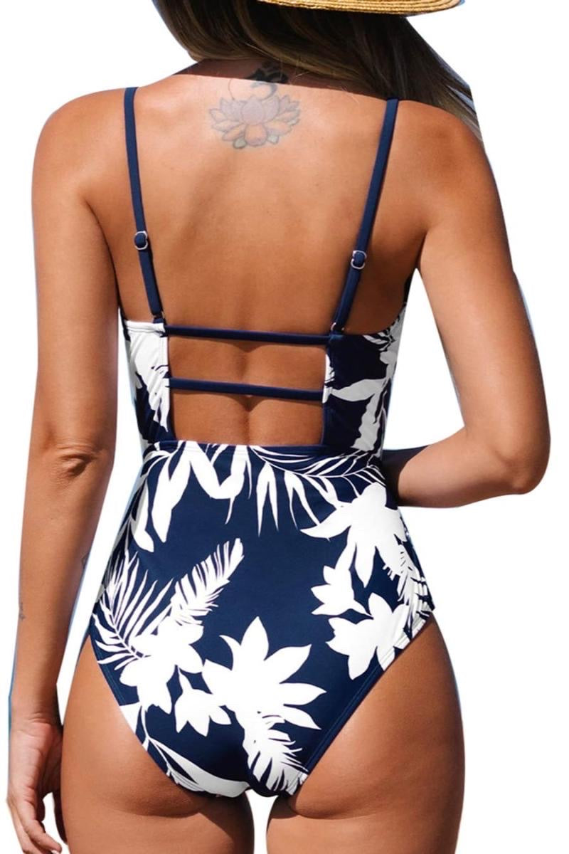 This sophisticated dark blue padded one-piece swimsuit combines style and comfort seamlessly. The backless design adds a touch of allure, while the adjustable straps ensure a personalized fit. The deep, rich hue complements various skin tones, making it a chic choice for any beach or poolside occasion. Enjoy both fashion and functionality in this sleek swimwear piece.