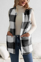 Sherpa Plaid Open Front Vest Coat