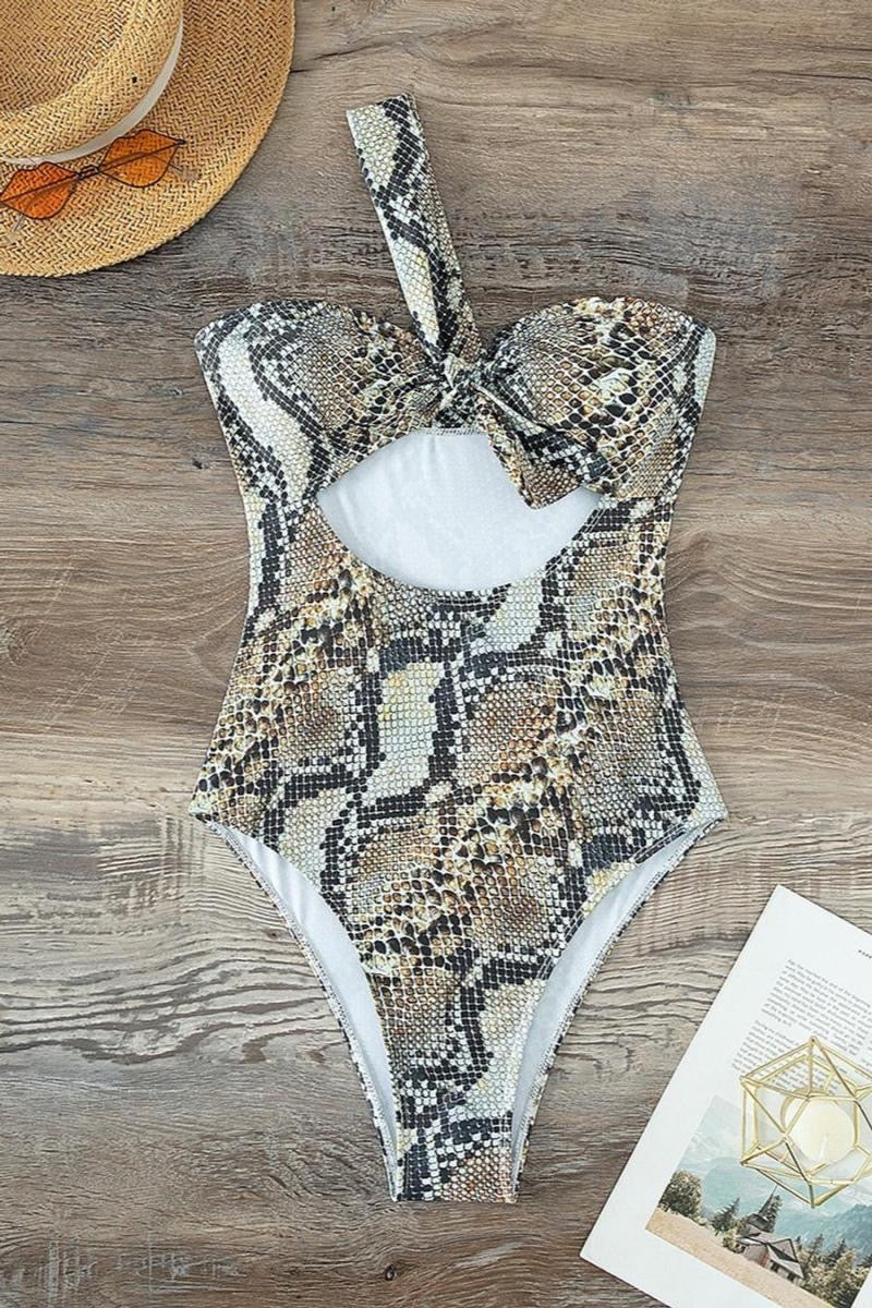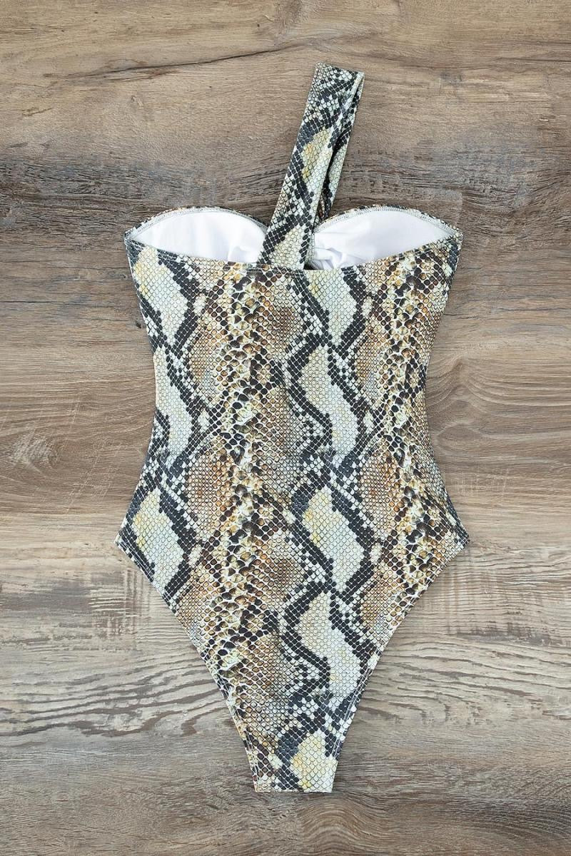 Experience fierce style in our Snakeskin Print One Shoulder One Piece. This swimsuit features a bold snakeskin print and a unique one-shoulder design, making it a standout piece on the beach. No need to sacrifice fashion for function, as this swimsuit offers both. Dive into the wild with confidence in this must-have addition to your swimwear collection.
